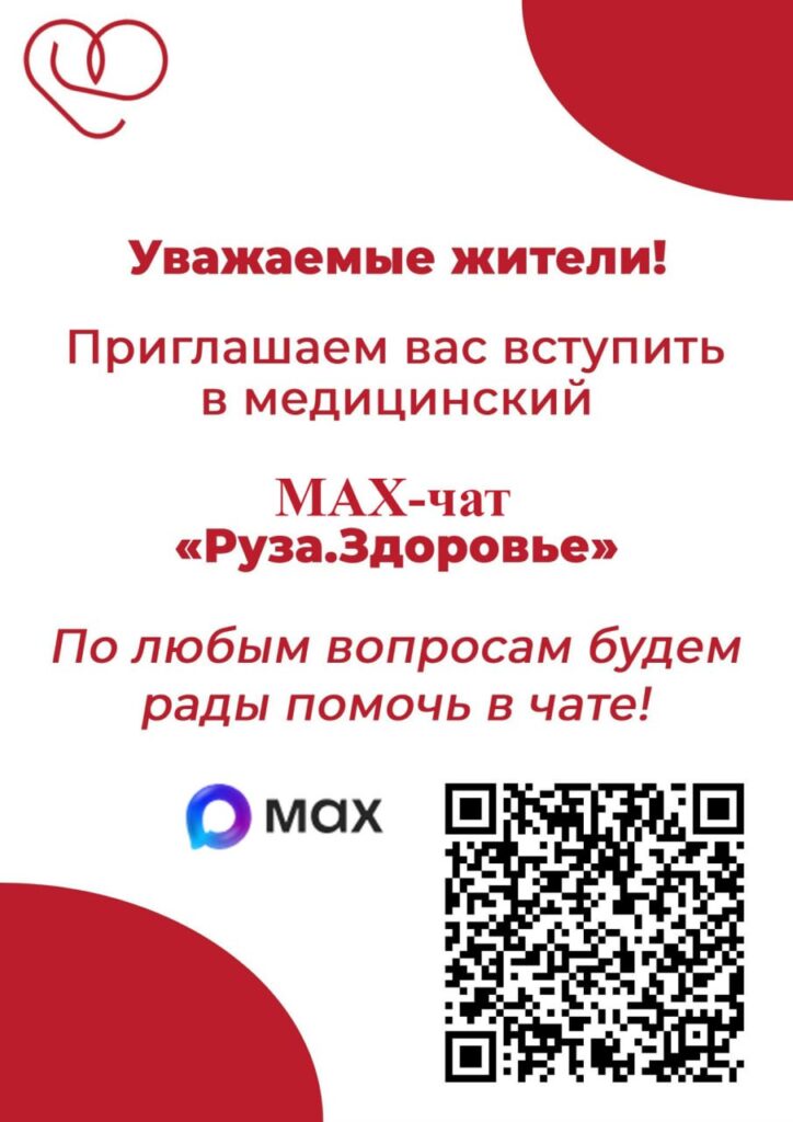 Уважаемые жители! Приглашаем вас вступить в медицинский чат «Руза.Здоровье» в MAX
