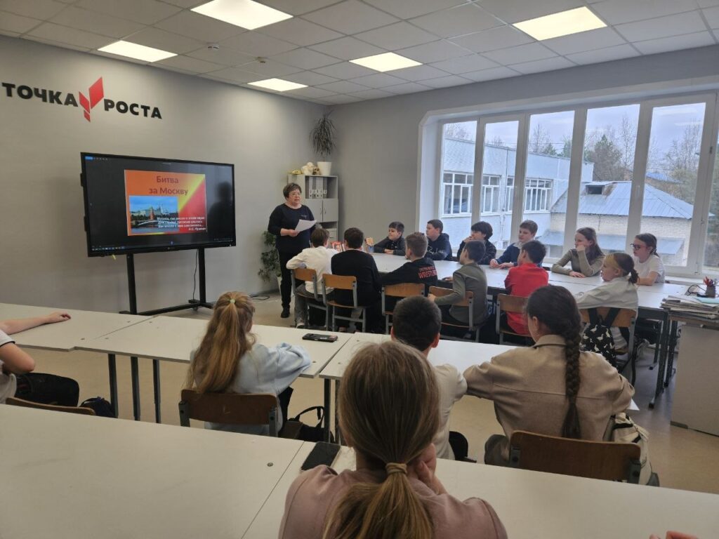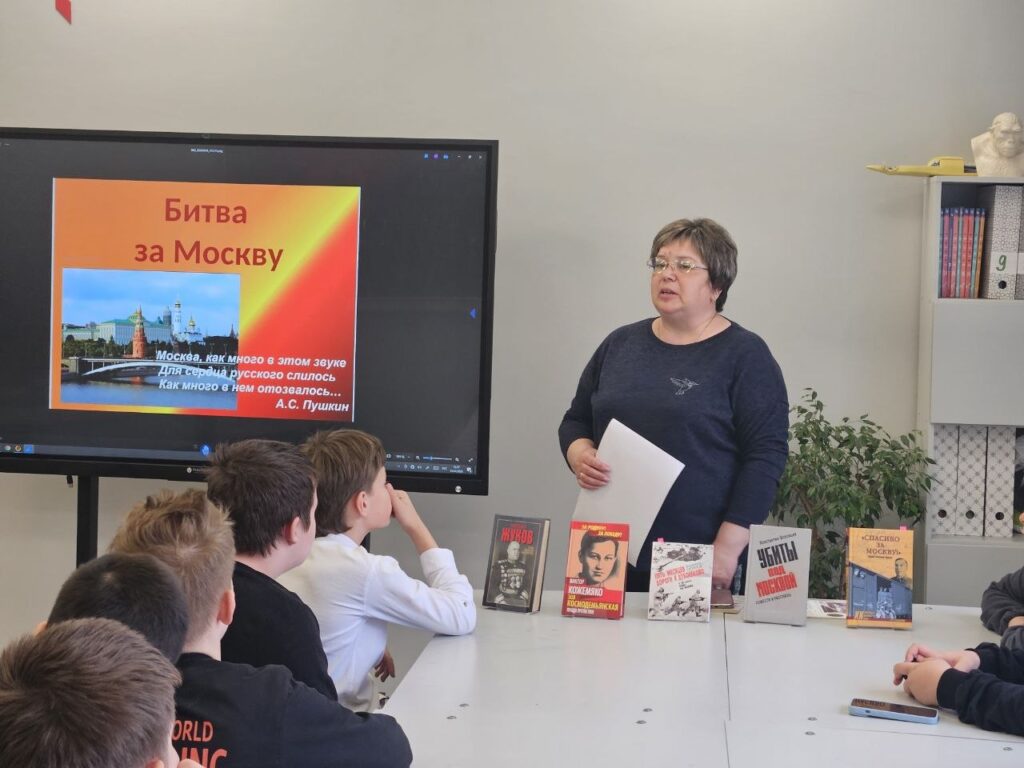 Сотрудница Сытьковской сельской библиотеки Рузского муниципального округа провела час истории для учащихся местного отделения гимназии №1 Рузы, приуроченный к 84-й годовщине со дня окончания битвы под Москвой.